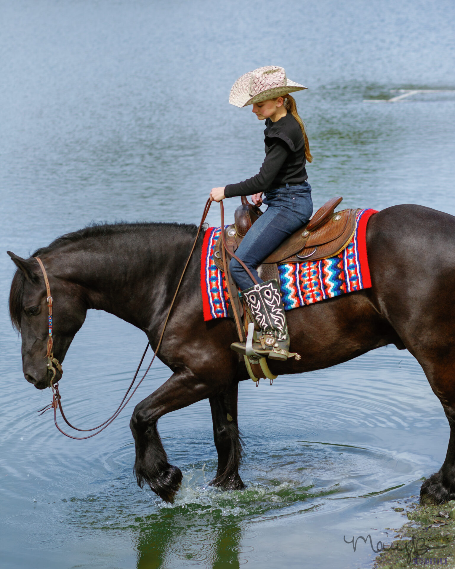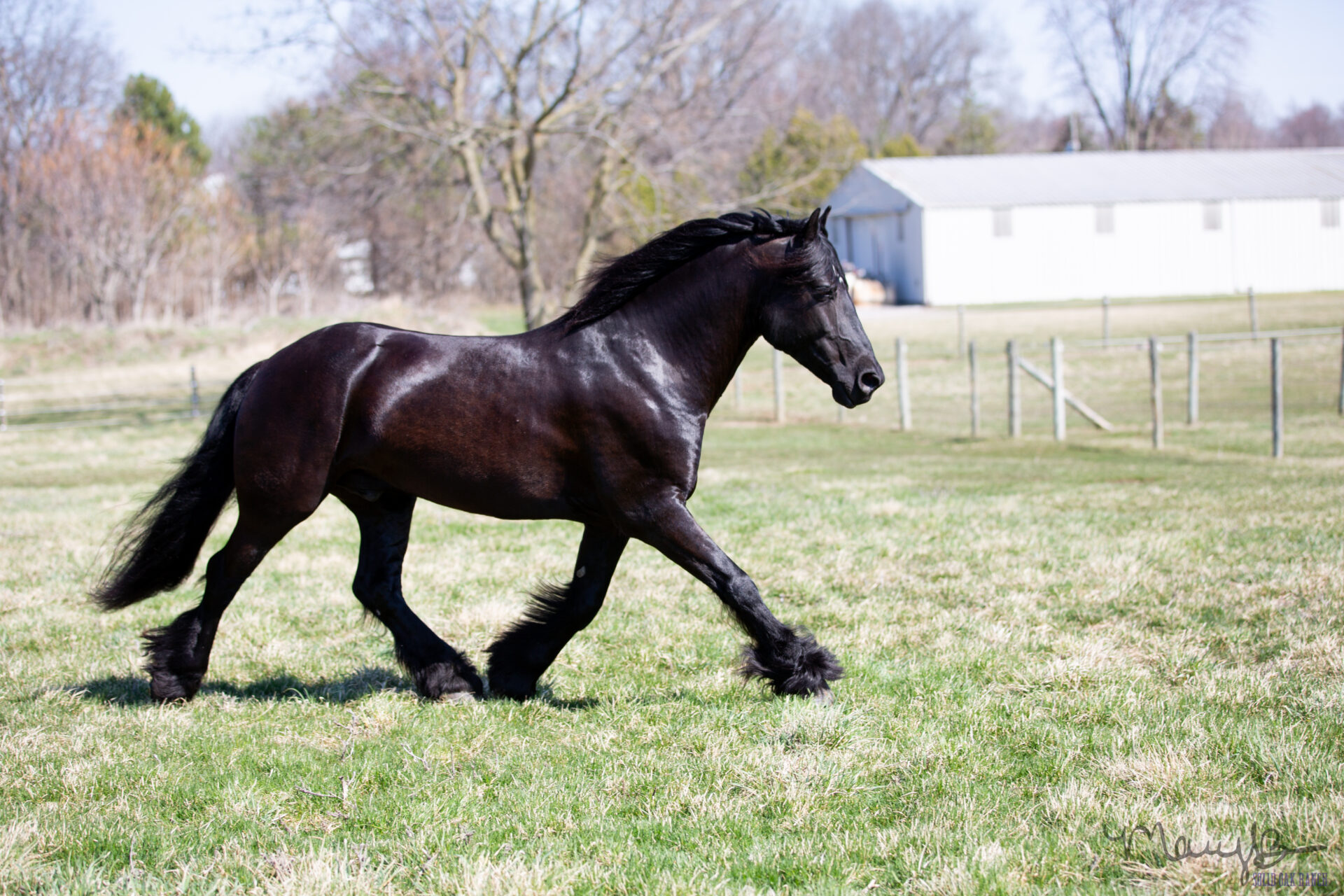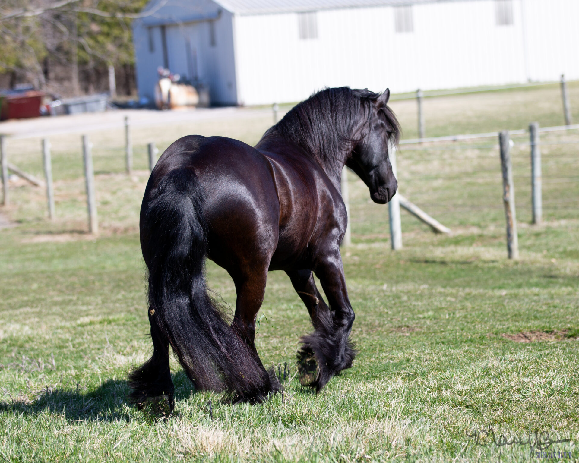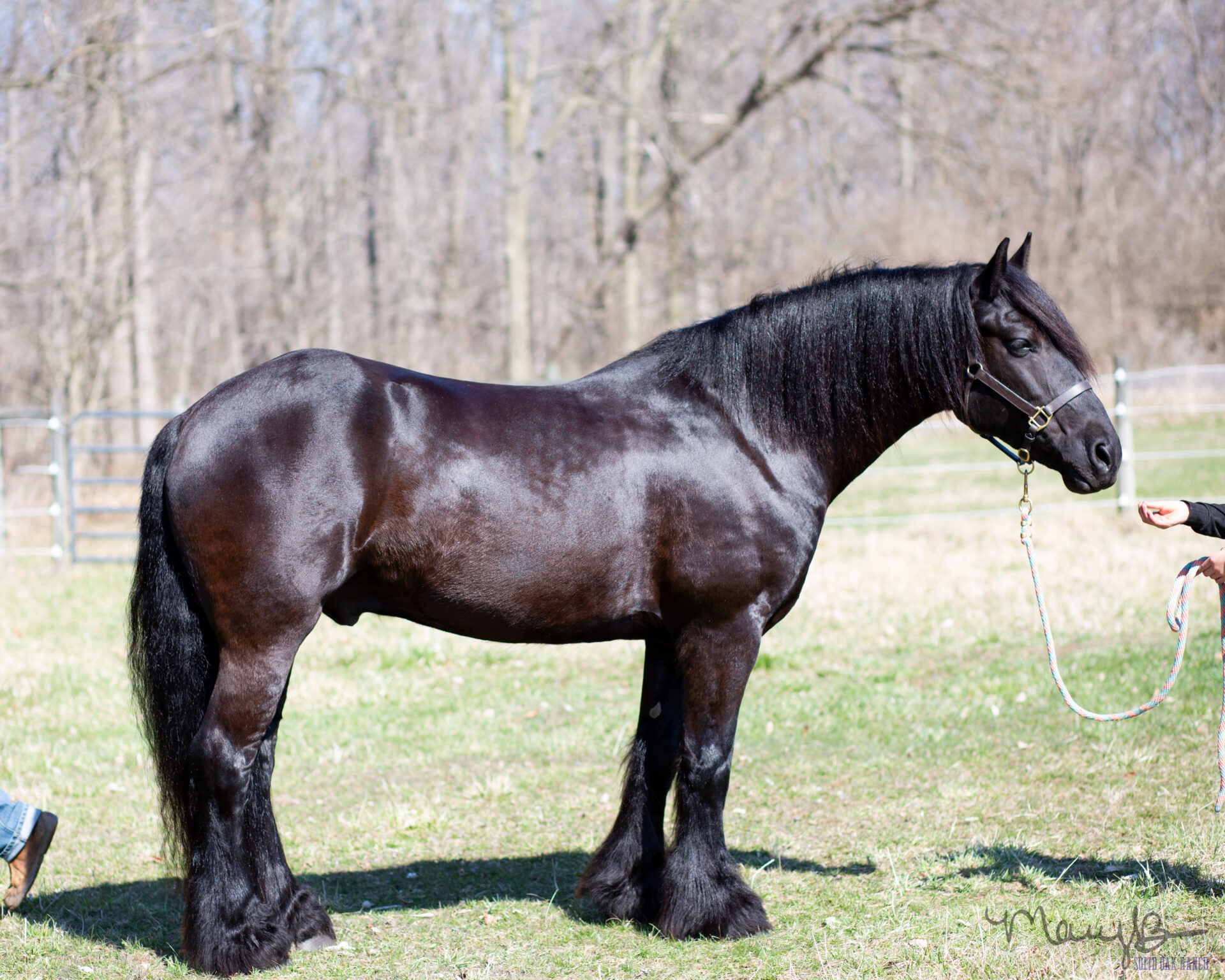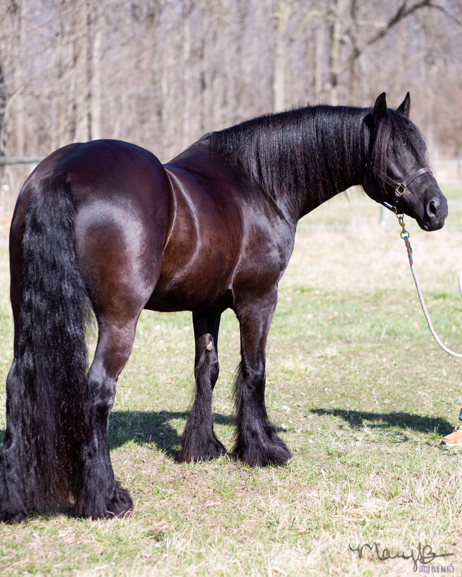 Mando is a 2016 registered GRHA Gypsy Crossbred gelding. He is sired by driving Friesian, Friso Van Laurel. He is such a one-of-a-kind, FUN and absolutely stunning horse! Mando can do it all. He can ride around like an all-around western show horse, circle like a reiner, you can ride him dressage, you can rope off of him, he drives, he trail rides, he does crazy obstacles and he has a laying down (on command) trick! He has a huge personality and wants to be in your business. He loads like a gem, clips, stands for farrier. No vices. Sound. He is the kind of horse that turns heads everywhere he goes-he has a look that just demands attention. He is the perfect size at 15.1 HH, with plenty of bone. He has been ridden by adults and children and aims to please. Mando is the kind of horse that you see at the elite sales, that draws the bidders and would be a treasure to take home.